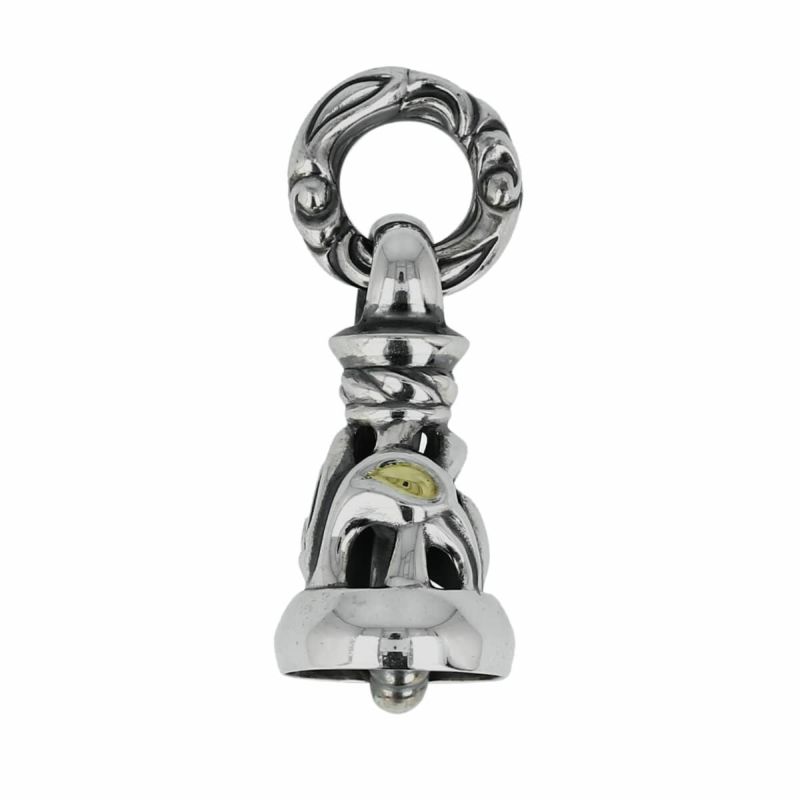 鳩をモチーフにしたベルペンダント。細部まで拘った造形美と独特の音色が特徴的な、ロンワンズを代表するペンダント。目部分の素材をイエローゴールドにする事でメリハリと高級感をプラス。