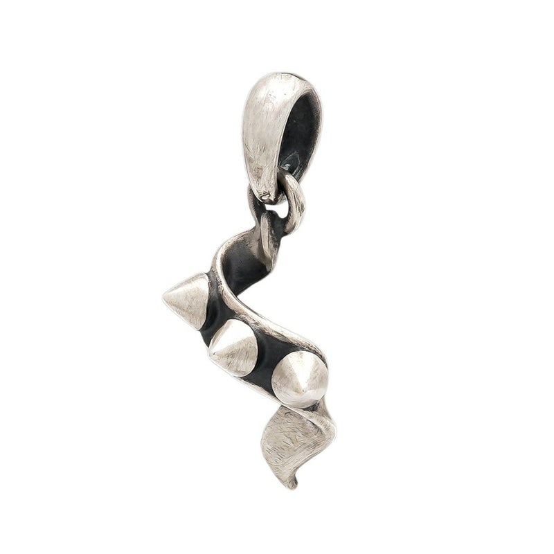ひらめくリボンにスタッズを打ったようなデザインのペンダントトップ。