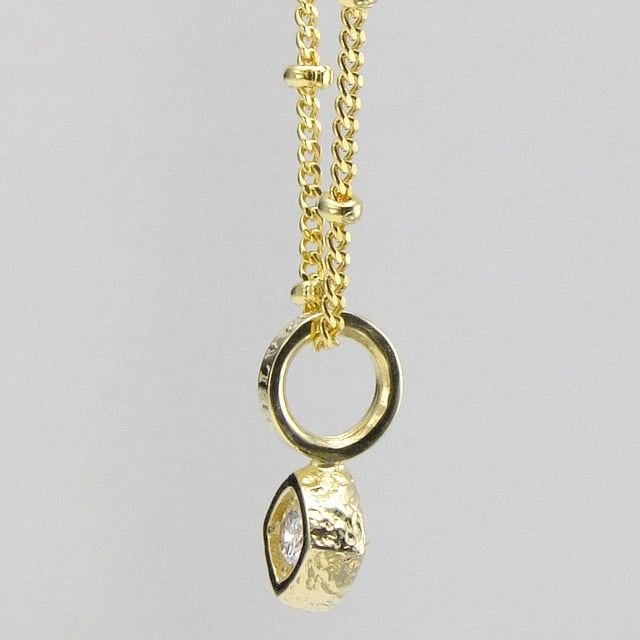 剥き出しの岩肌をイメージしたテクスチャーを全体に施した小振りなペンダント。他のペンダントとの重ね着けやシンプルに一点着けで楽しんでもらえるデザイン・大きさが特徴です。