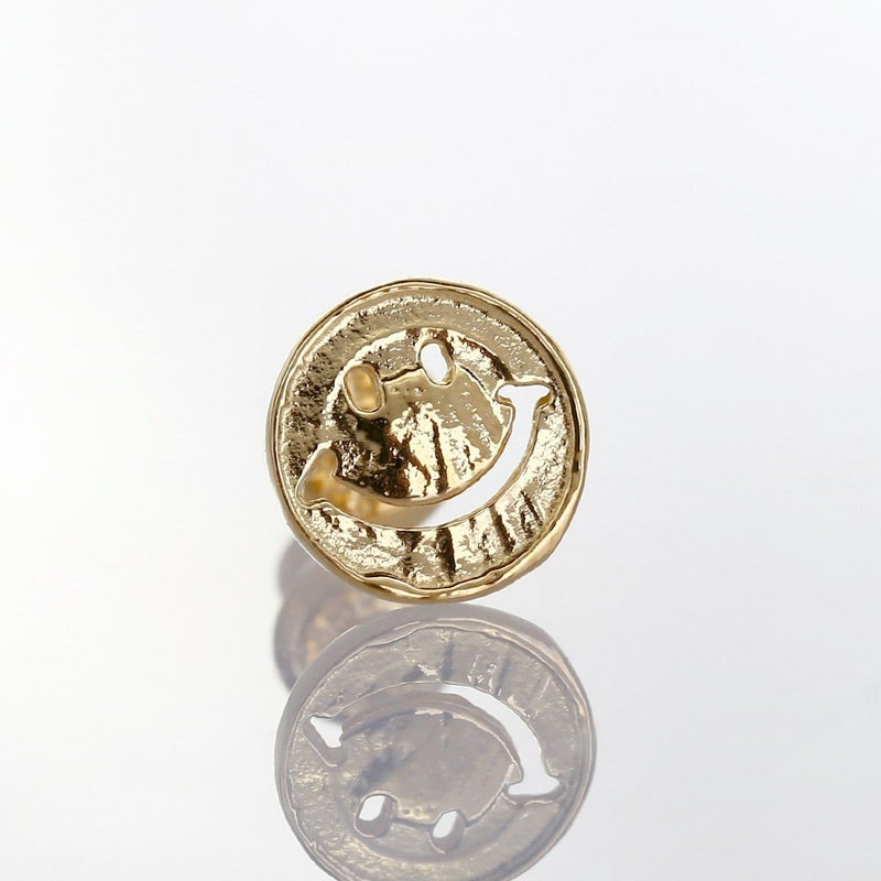 メダイをスマイルカットしたシルバー製ピアス。ゴールドコーティングVer