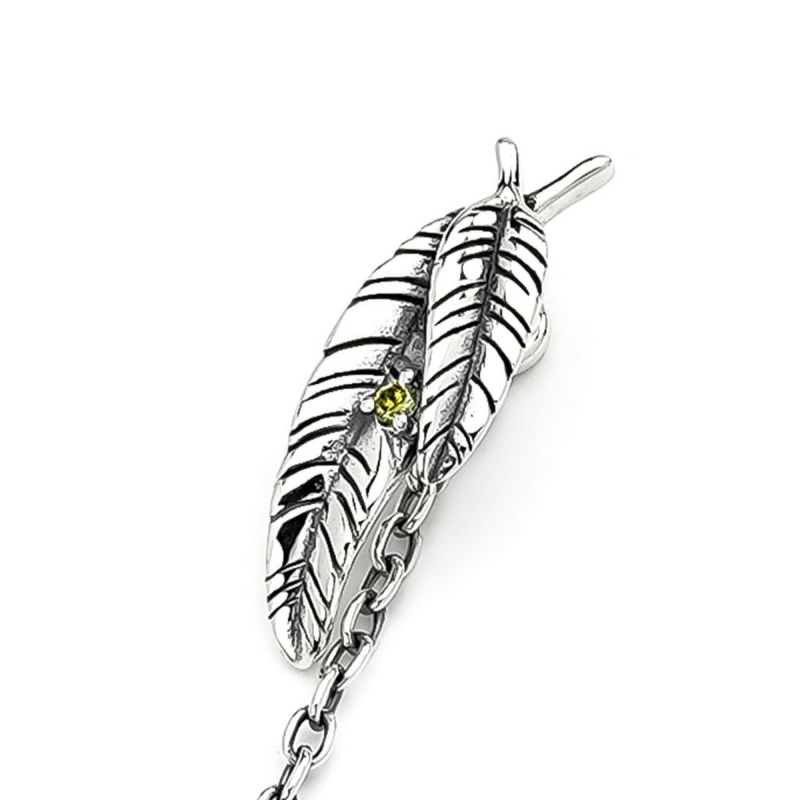 羽の厚みを抑えつつ一枚一枚の重なりを美しく表現し、繊細な魅力を感じさせます。揺れ動くロングパーツは海を自由に泳ぐ姿のようなゆるやかな浮遊感をつくり、正に妖精の様な幻想的な雰囲気を連想させます。左右異なるデザインでしっかりと個性を持っているので一点着けでも楽しめるピアスとなります。