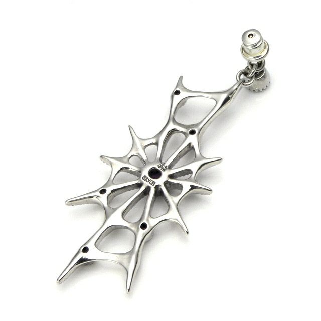 蜘蛛の巣のインパクトあるデザインのピアス。スタッドピアス部分のみでも使用できるのでコーディネートしやすいアイテムとなっております。左耳用