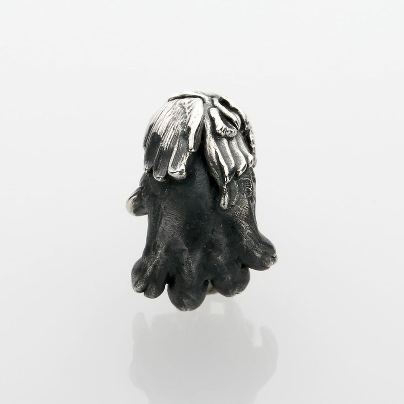 ピアスキャッチ側が本体。耳の後ろから手を覗かせ、イタズラをするピアス。幻影が荒野を通る人の後ろから現れ、おどかしている様子です。