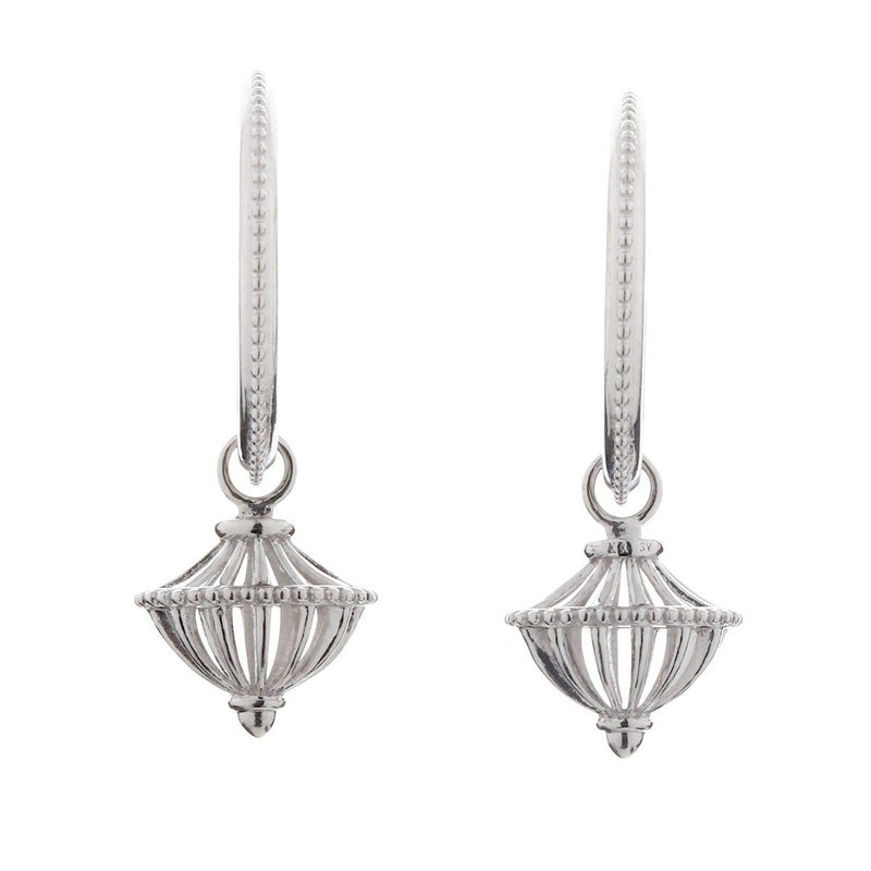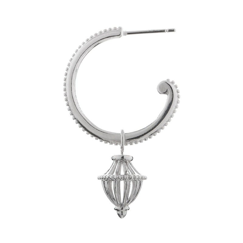 無病息災を祈り、元宵節(げんしょうせつ)に放たれる天灯が夜空を照らすようなイメージのランタンをデザイン。ランタンの透かしのデザインが上品で、ボリュームのあるピアスになります。ランタンは着脱可能ですので、シンプルなフープピアスのみでもご着用頂けます。