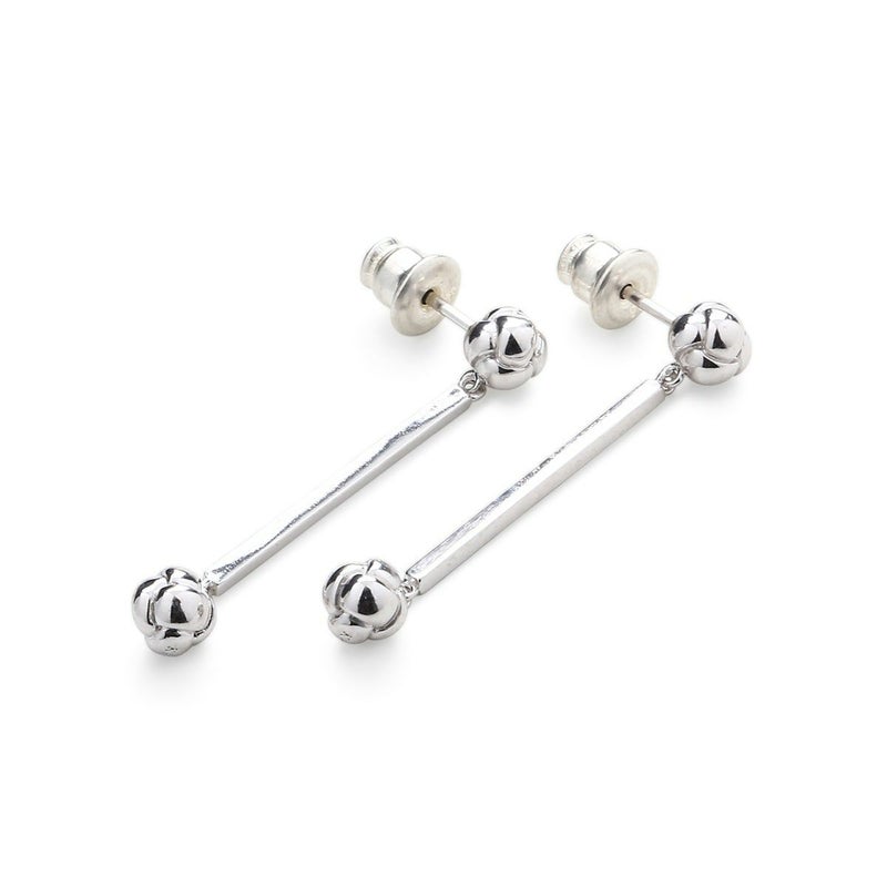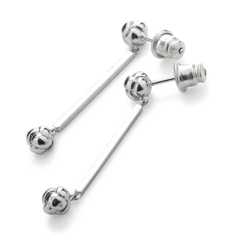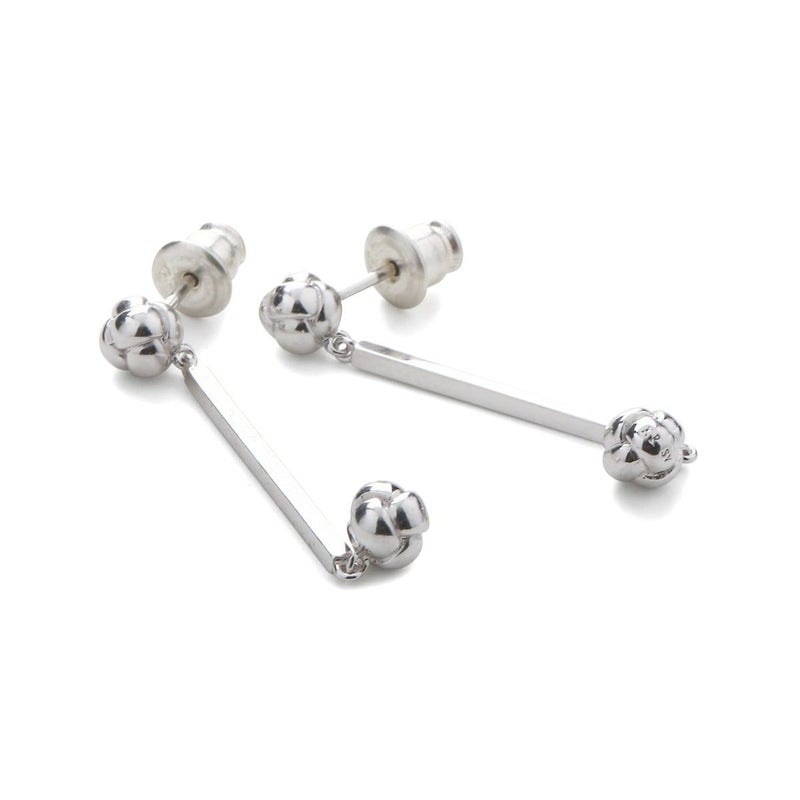 日本文化の伝統的な紐の結び方「水引」。何度でも解き結びなおす事ができるので「何度あっても縁起が良い」という意味を持ちます。その一つである「釈迦玉」がモチーフ。釈迦結び、釈迦玉、一文字結びなどと呼ばれています。四角柱のパーツの両端に結び目があるため個性的な印象と、各パーツが揺れることによって華やかさもプラスされます。