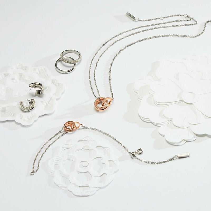 バランス、調和、静寂を象徴するクラシックなエントワインシリーズのフープです。シルバートーンのフープとクリスタルをあしらったフープを組み合わせて、ミスマッチな仕上がりになっています。