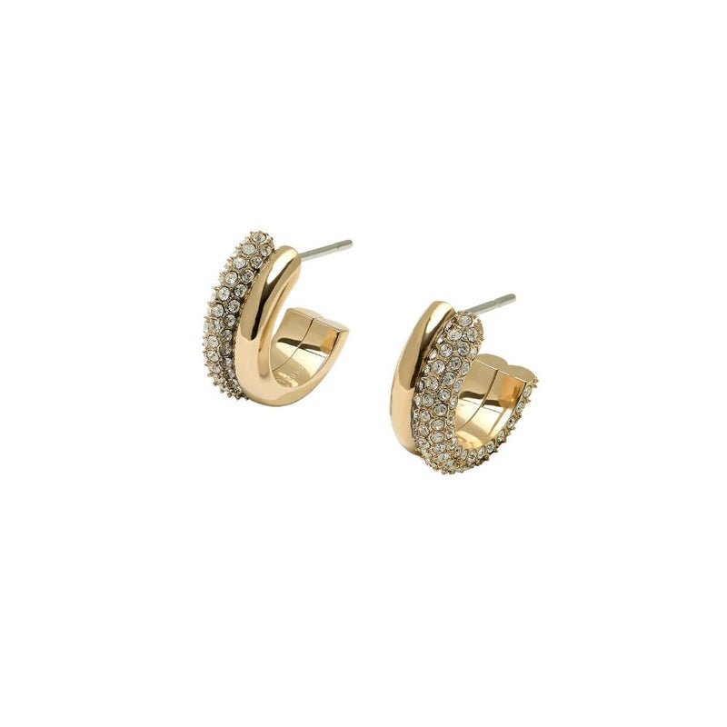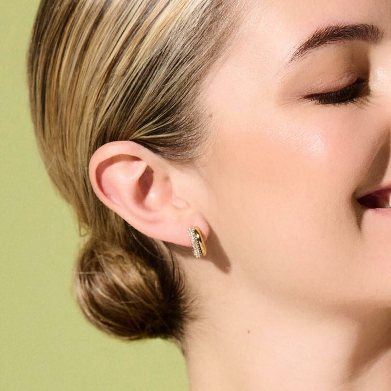 バランス、調和、静寂を象徴するクラシックなエントワインシリーズのフープです。ゴールドのフープとクリスタルをあしらったフープを組み合わせて、ミスマッチな仕上がりになっています。