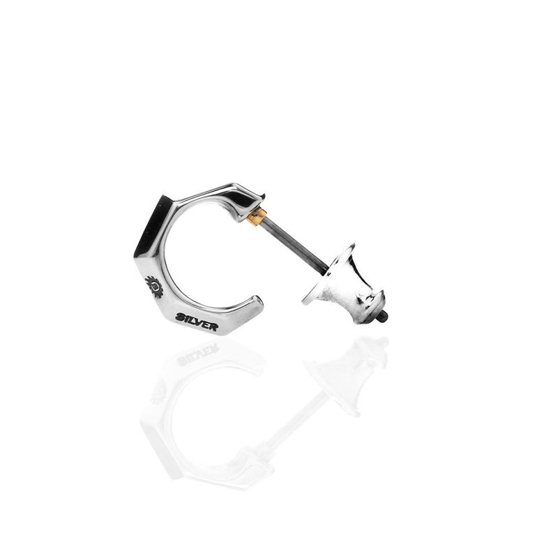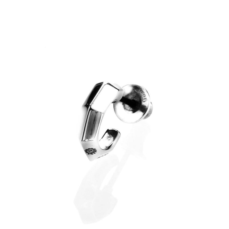 エッジによるシャープさと流線的なシルエットを併せ持つピアス。巧みな面構成が耳元で輝きを放つ。シンプルできれい目なスタイルに合わせやすく、輪が小さめのフープピアス。
