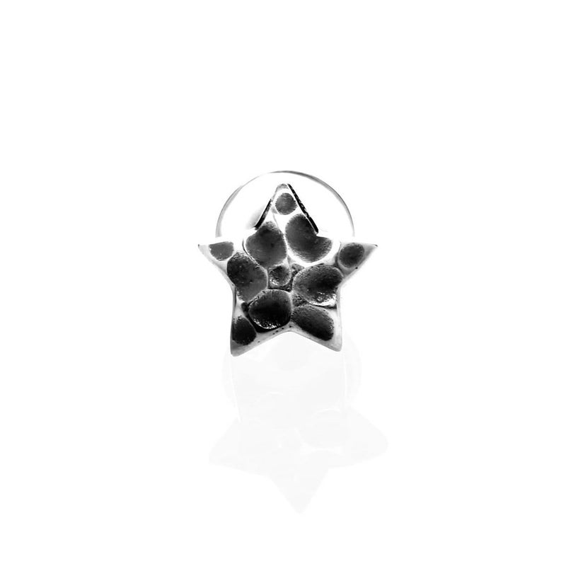 ハンマーパターンが、まるでクレーターかのように表面に刻まれたスターピアス。