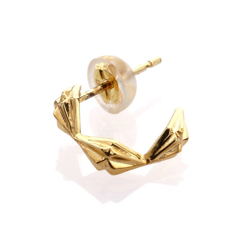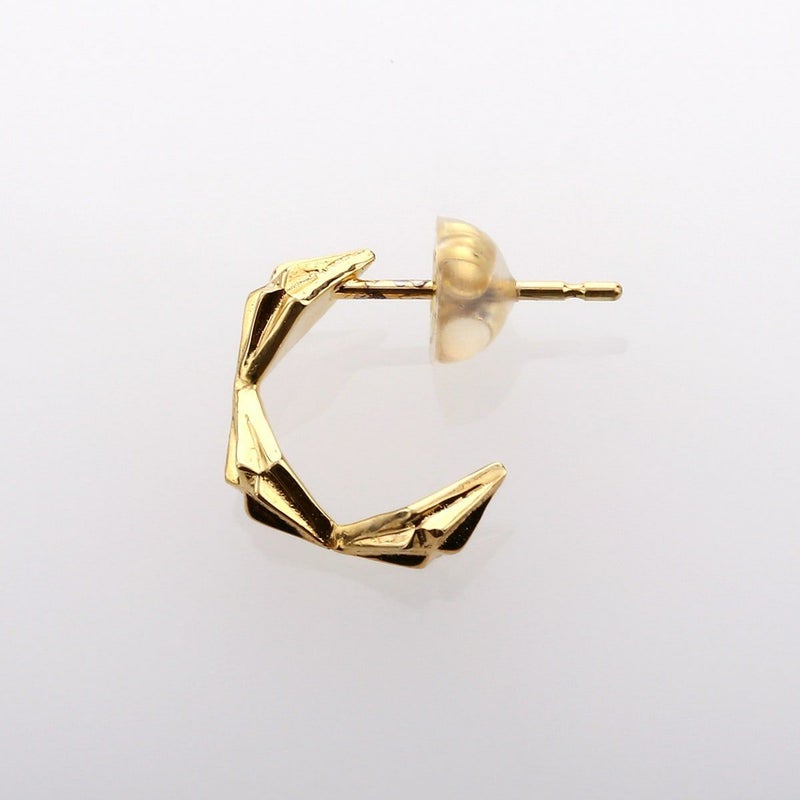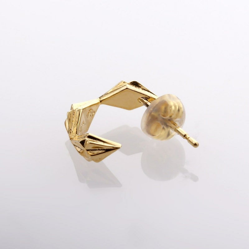 三角形の面を集合させて構築したDelta Spearを連結させて、ハーフフープ状にしたピアス。