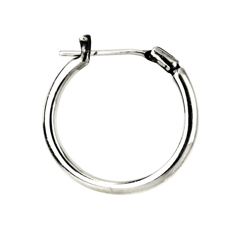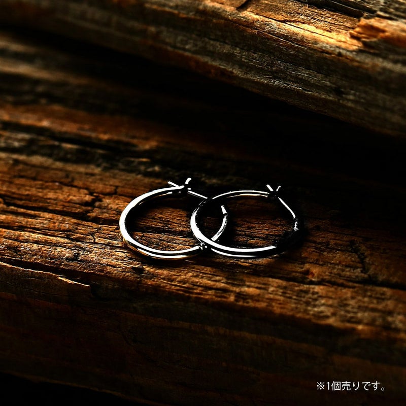 ピアスの針の部分が可動する開閉式のピアス。この開閉式により、ピアスのキャッチの紛失する不安が解消されました。ピアスの根元辺りに1本ラインがカービングされただけの、シンプルなデザインで、どなたにも、どんなシチュエーションでもコーディネートしやすいシンプルデザインのフープピアスです。