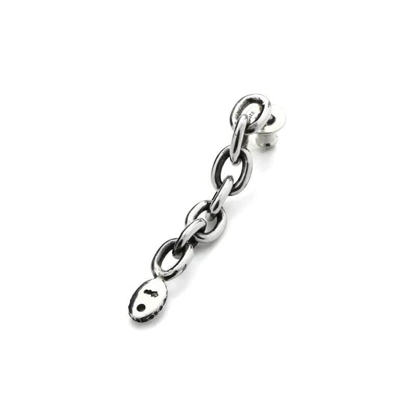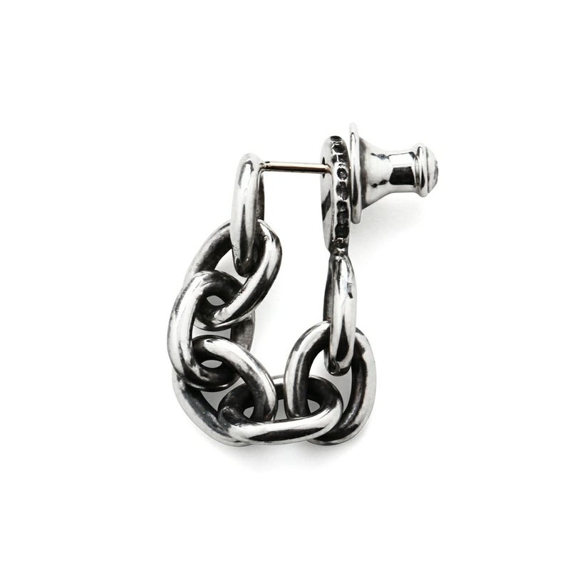 チェーンを垂らして着用、フープ状に着用の2通りの使い方ができるピアスです。太めのチェーンが耳元で揺れる、色気のある存在感を放ちます。金属アレルギーを起こしにくいK18イエローゴールド製ポストを使用しています。(個人差があります)