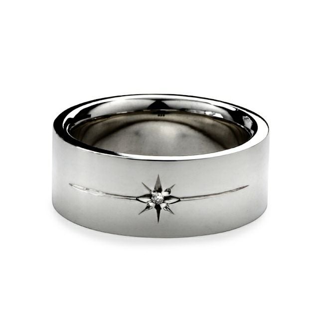 2mmというリングとしてはかなりボリュームのある厚みがありながら、リング内側をひたすら削り磨く作業を行いエッジをラウンドさせる事で快適な装着感を得たシルバー平打ちリング。シンプルでありながら ボリューム感やサイズ感 そしてフィット感など細部にまでこだわり ピカピカに磨き上げられたリングは手元をゴージャスに演出します。トップにはダイヤモンドをタガネで彫り止めします。