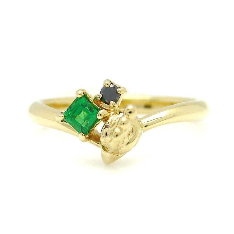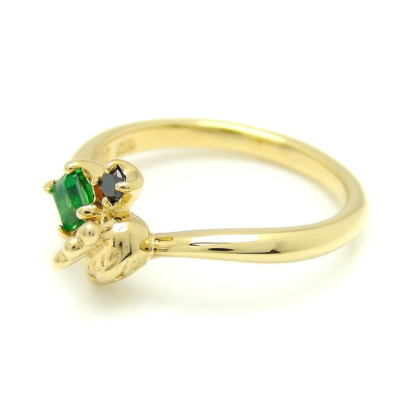 K18イエローゴールド、グリーンガーネット(スクエア3mm×1)、ブラックダイヤモンド(ラウンド2mm×1)