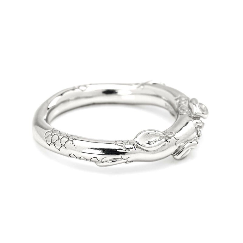 人魚の鱗を月桂冠に見立て、永遠の愛の証を表現しています。S字ラインで描くことで指にもなじみやすくなっています。