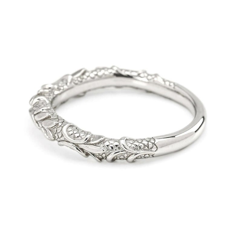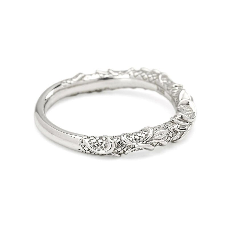 水の精霊をモチーフにし、水が流れるような美しいシルエットを鱗で表現しています。S字ラインで描くことで躍動感も増し、ハードな印象を和らげてくれます。