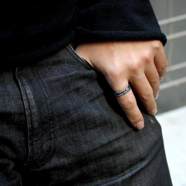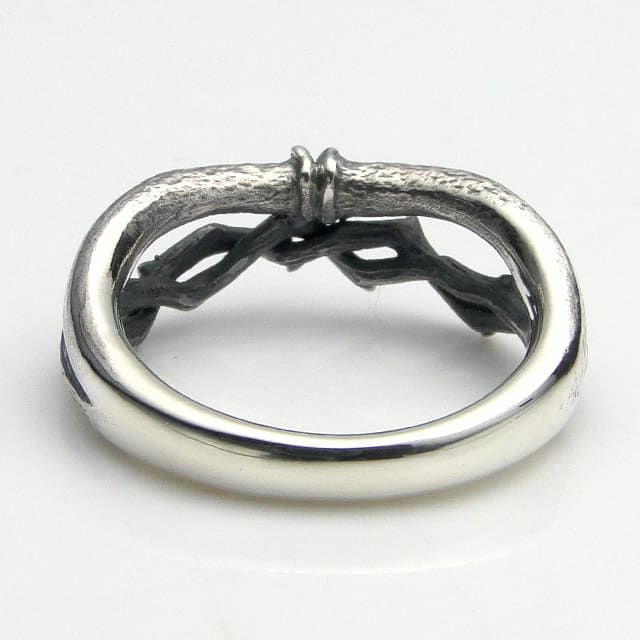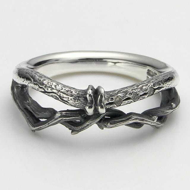 朽ちていく骨と生命力のある棘で、生命の儚さを表現している作品です。装着時に2連リングの様に見えます。