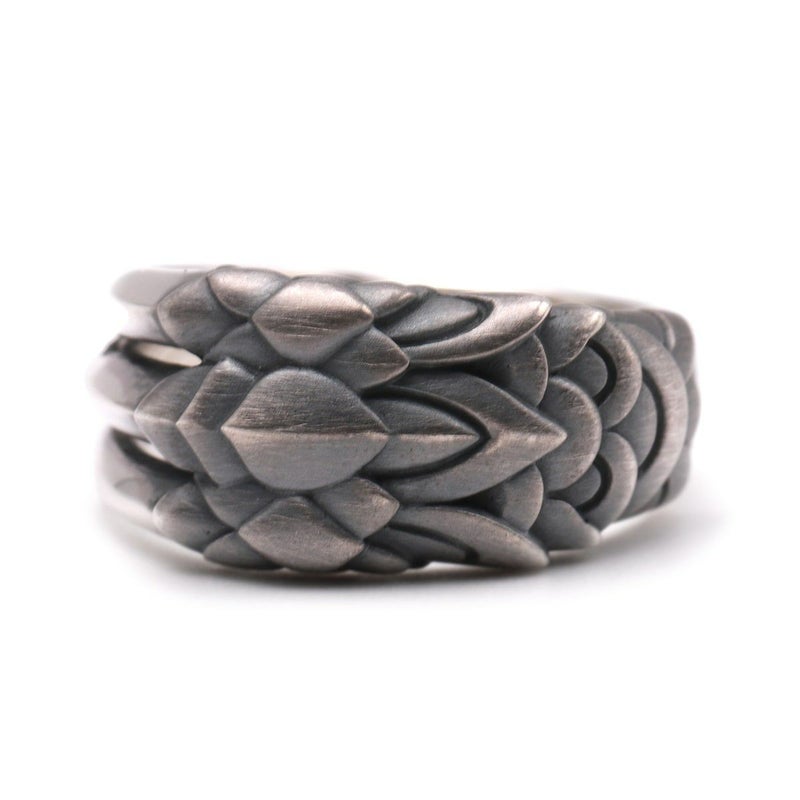 兵士隊の武器である爪と甲殻を表現したリング。 攻めだけでなく鉄壁な守りも形成されていた様子を表した力強いリング。