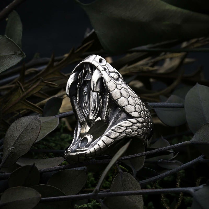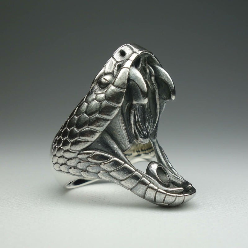毒蛇の頭部をモチーフにした、迫力のあるリング。