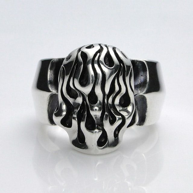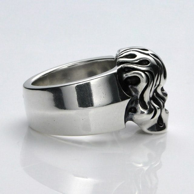 ブランドの顔とも言える「パイロマニアックスカル」を少しトラディショナルにに着けこなせるリング。