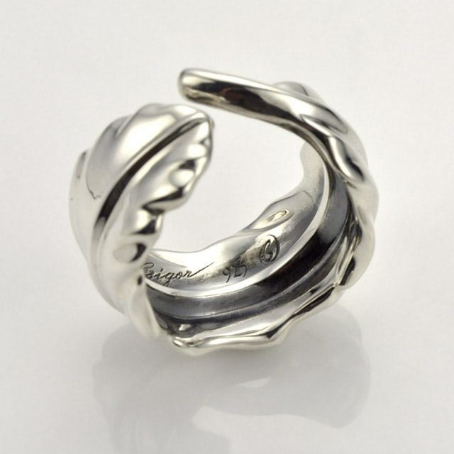 フェザーを銀の曲線美により表現した上品なリング。