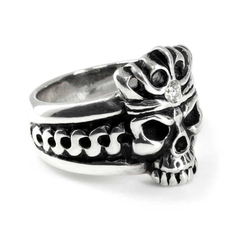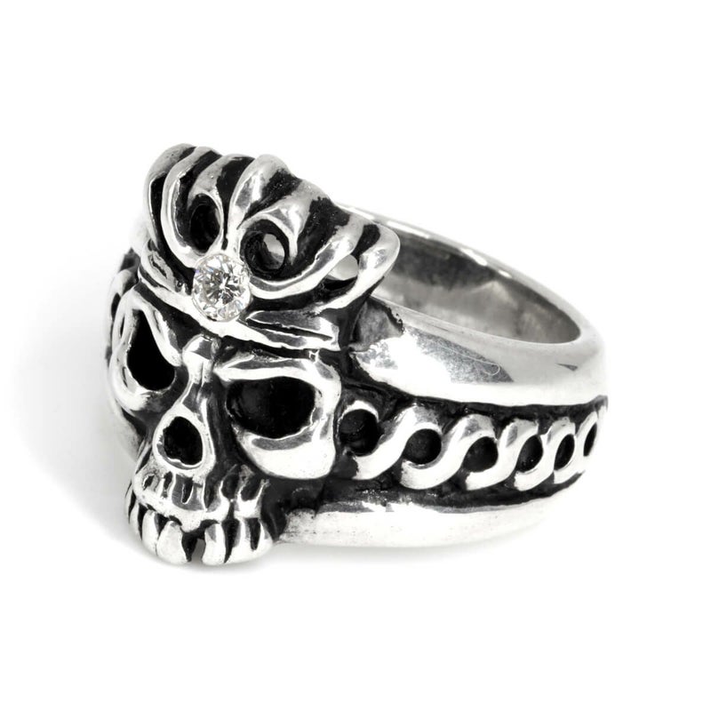 レザーズアンドトレジャーズ スカルクラウンリング w/ダイヤモンド