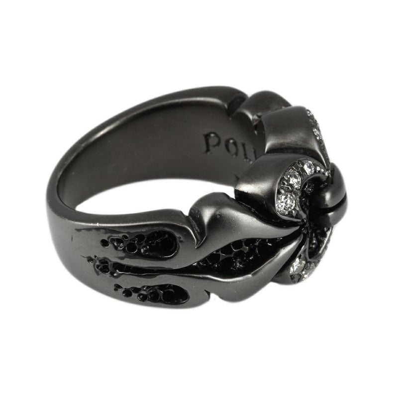 中世の騎士に与えられる階級章のデザインを基に、程よいボリューム感にまとめられたシンプルでスタイルを選ばない王道のアイテム。コントラストのあるブラックカスタムに輝きのあるダイヤモンドを合わせたことで、煌びやかな雰囲気が引き立つジュエリーとして仕上げられている。
