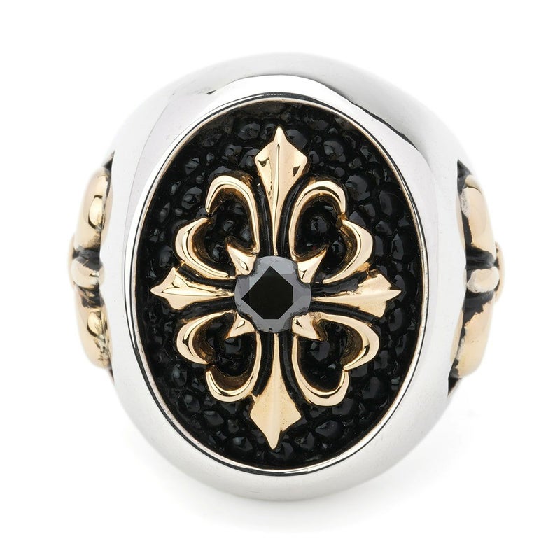 レザーズアンドトレジャーズ スペシャルエディションリング w/K18ストーンクロス&フレアデリー w/ブラックダイヤモンド(クロス)
