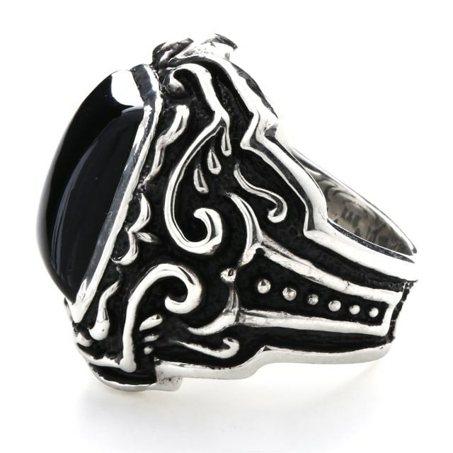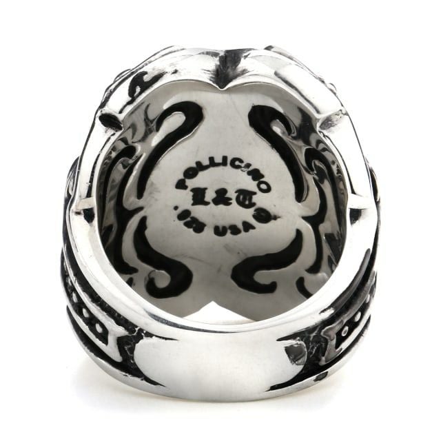レザーズアンドトレジャーズ スクエアベゼルスクロールインレイリング w/ブラックストーンインレイ