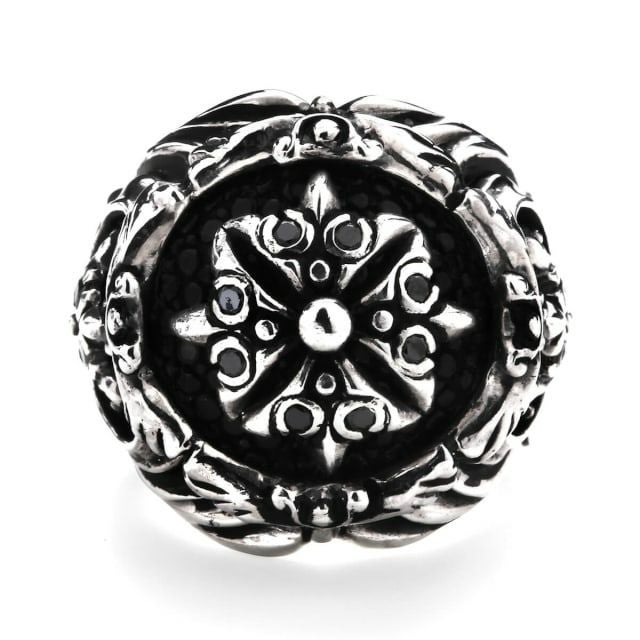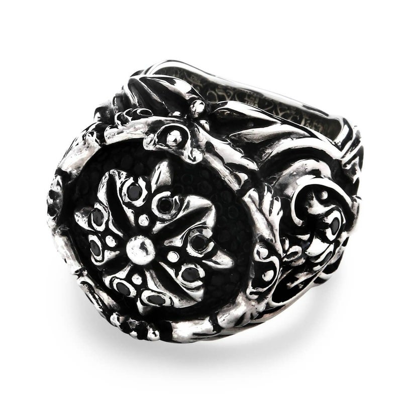 レザーズアンドトレジャーズ バロックインレイリング w/フィリグリークロス w/bkdia/bkdia w/サンデッドスティングレイ