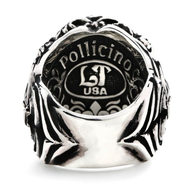 ボリューム感を抑えつつ、細やかな装飾と立体感を重視してデザインされたインレイモチーフのリング。複雑なクロスにブラックダイヤ散りばめたその姿は、どの角度から見てもジュエリーとしての雰囲気が感じられるように仕上げられている。