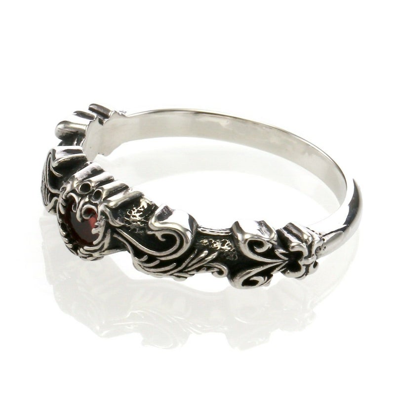 レザーズアンドトレジャーズ ナロースクロールハートリング ガーネット