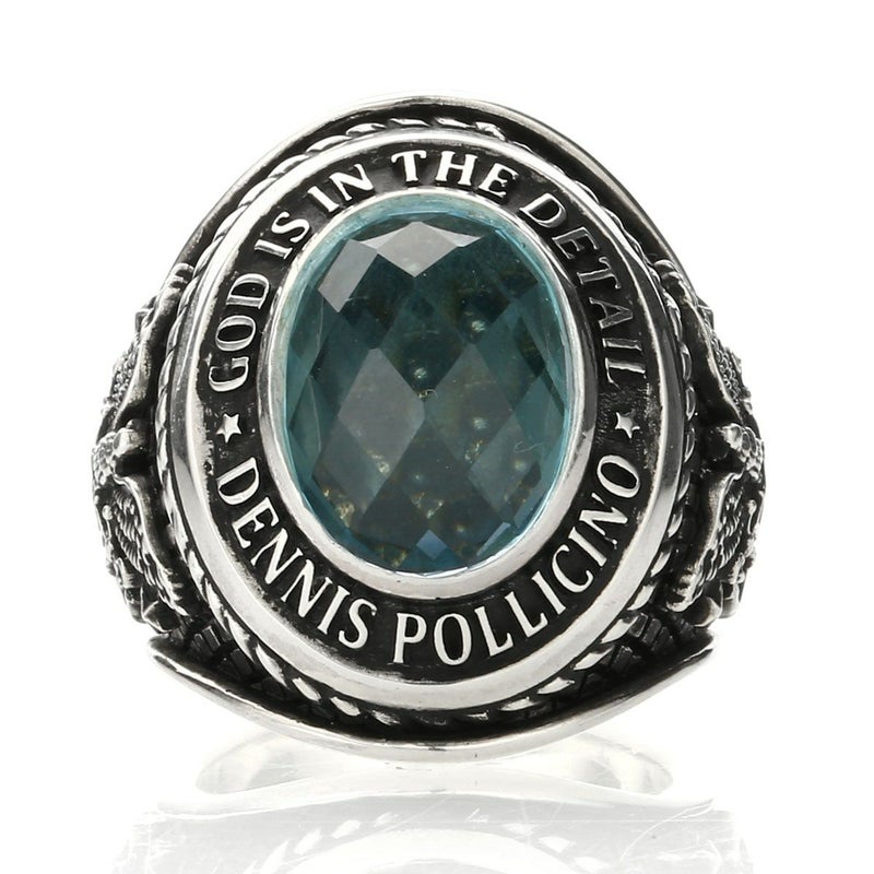Leathers&Tresures創設者でありデザイナーのDennis Pllicino。かつて、アメリカ海軍に所属した経緯からUnited States Navyのイメージソースをカレッジリングに込めた彼の2周忌のメモリアルリングです。