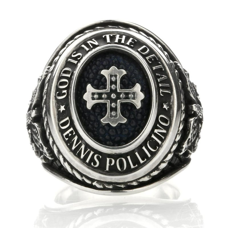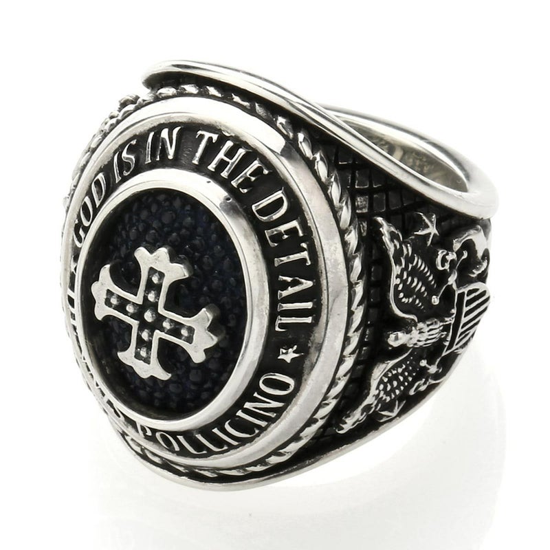 Leathers&Tresures創設者でありデザイナーのDennis Pllicino。かつて、アメリカ海軍に所属した経緯からUnited States Navyのイメージソースをカレッジリングに込めた彼の2周忌のメモリアルリングです。