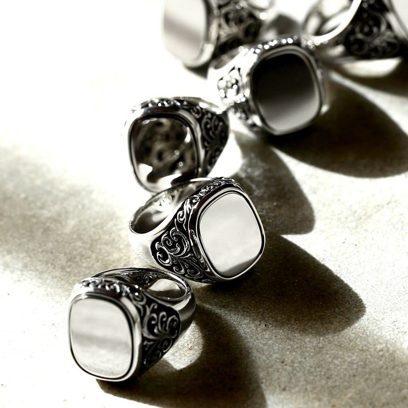 インタリオリングとは別名シーリングリングと呼ばれ、シーリングワックスを用いて印璽(シール)をし、同時に中身が手つかずである証明として古い時代に使われていたものです。元々古い時代に紳士が小指に付けていたリングになり、小さいサイズから製作可能となっております。