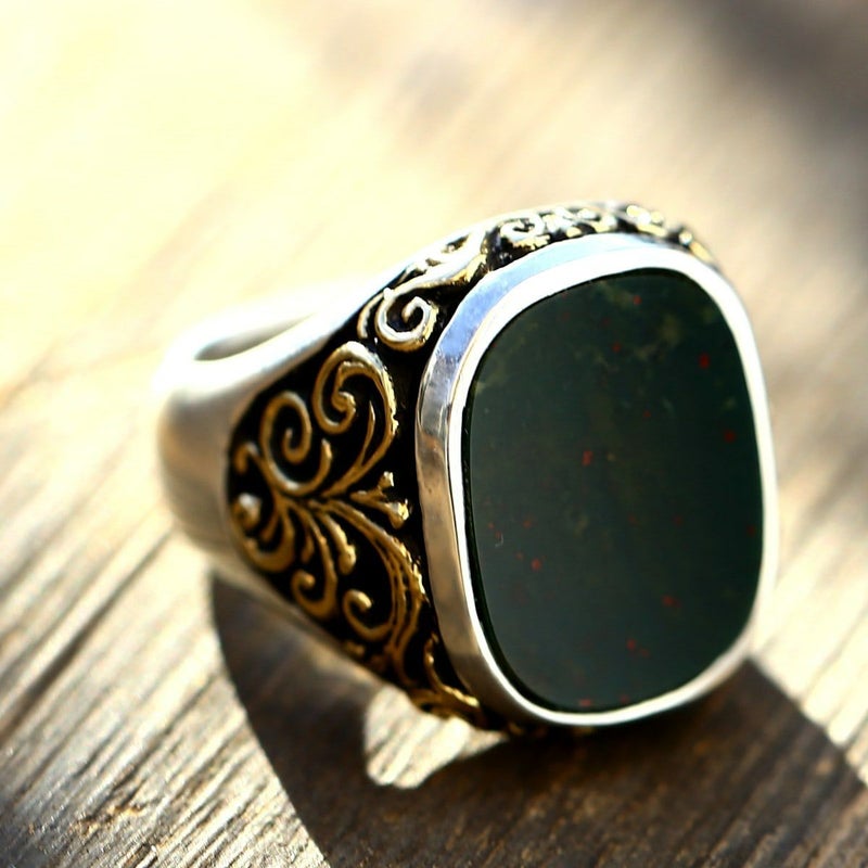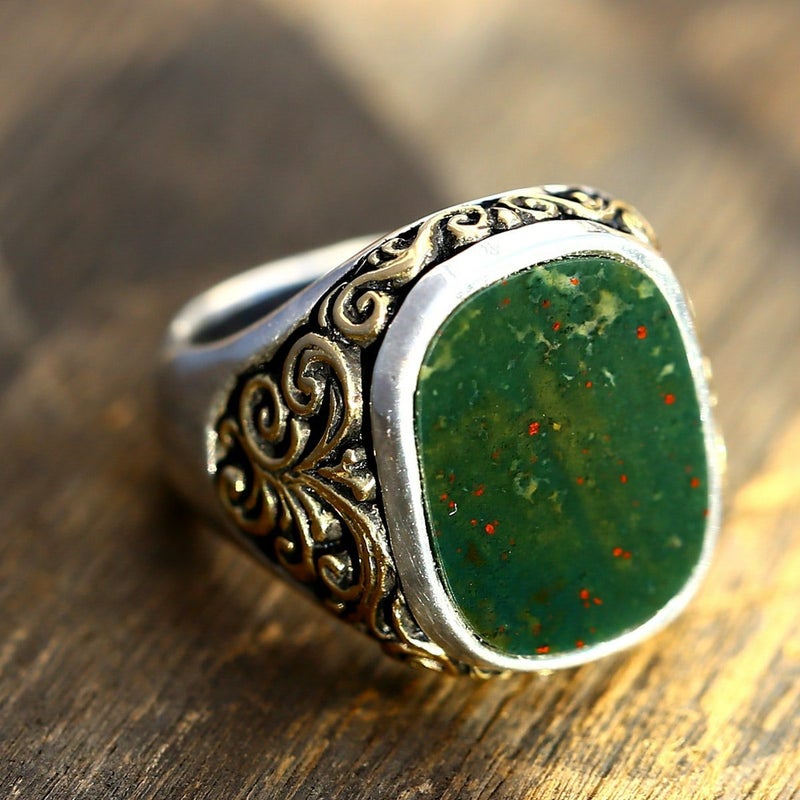 【要見積もり】レザーズアンドトレジャーズ スクロール インタリオ リング w/ K18 スクロール w/ ブラッドストーン