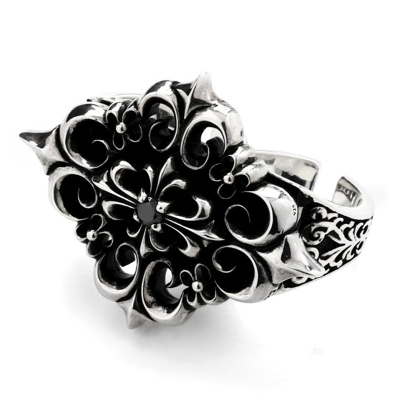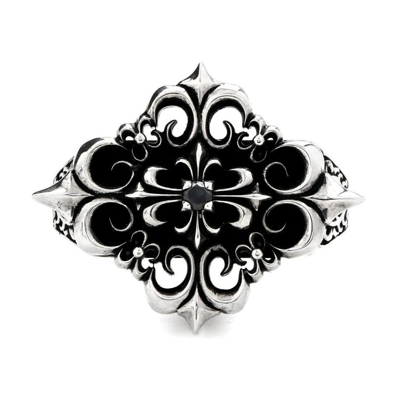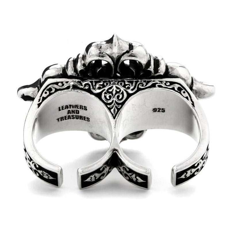 レザーズアンドトレジャーズ 2フィンガー リング w/ フォーフレアデリー w/ ストーンクロス w/ ブラックダイヤモンド