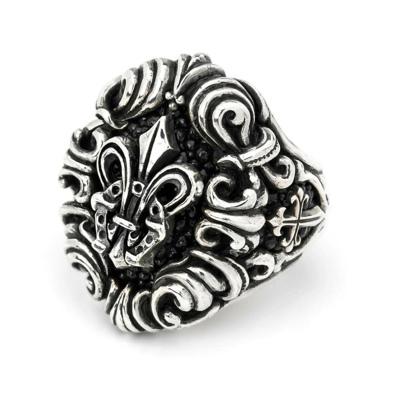 デニス氏の没後10周年に合わせて制作された、リングの3カ所にレザーインレイが組み込まれた今までにない新構造のリング。中央の百合の紋章と馬蹄を組み合わせたモチーフは、気品のある優雅な雰囲気と華やかさをあわせ持っています。