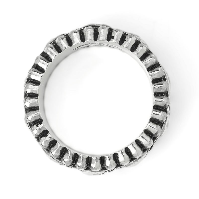 リングの上下にビーズ型の彫刻を施した、中央が回転するリボルビング技法で作られたリング。