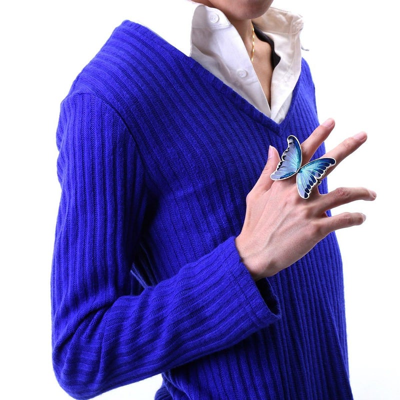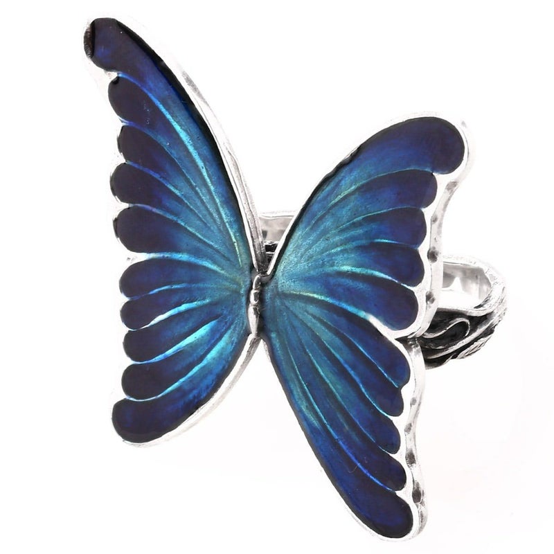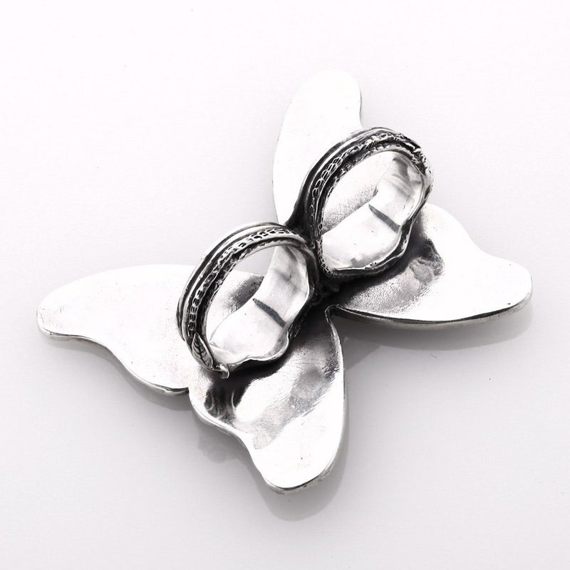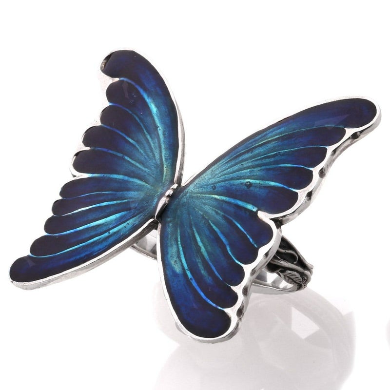 「世界一美しい蝶」と言われる大きなモルフォ蝶をモチーフとしたリング。ニ本の指を通すリングです。