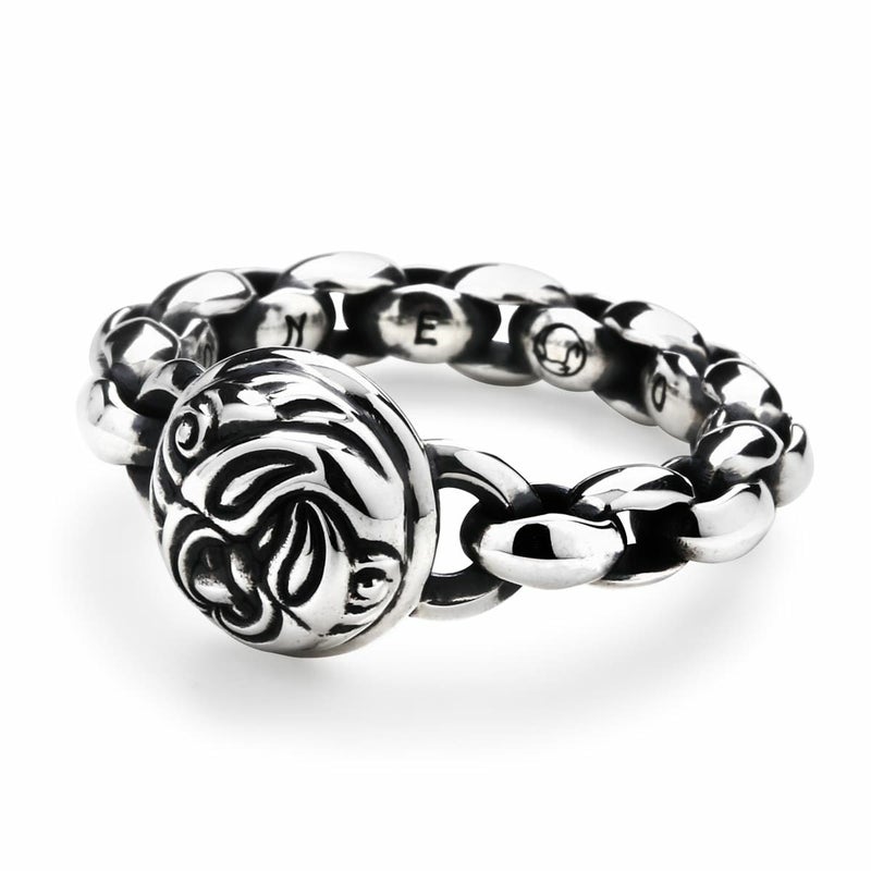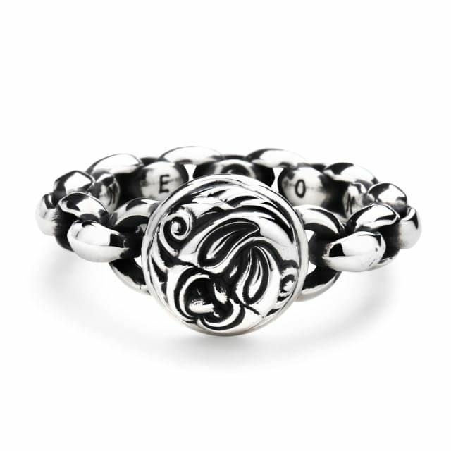 ブレスレットで人気のシルクリンクをリングで表現し、中央にブランドアイコンでもあるネストデザインを施した作品。小振りなデザインながら質感は完全に再現されておりクオリティの高さを実感出来る。