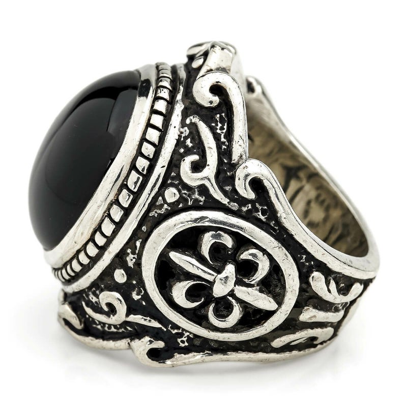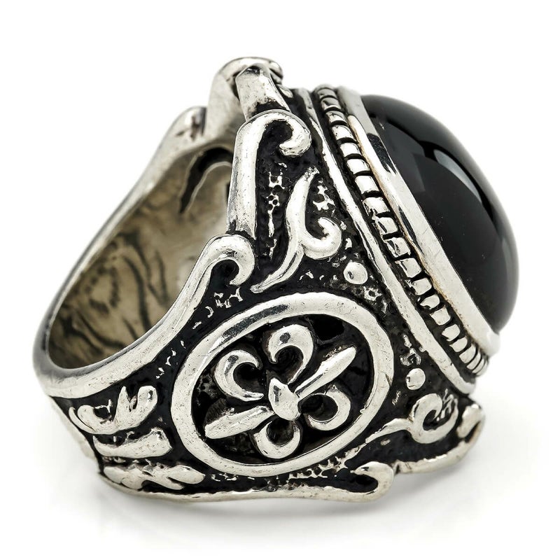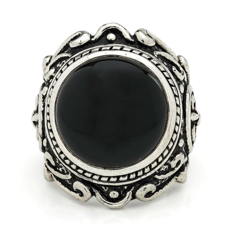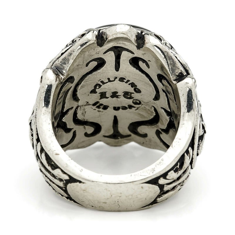 【現品のみ】レザーズアンドトレジャーズ ラウンドベゼルスクロールインレイリング w/オニキス【リングサイズ19号】
