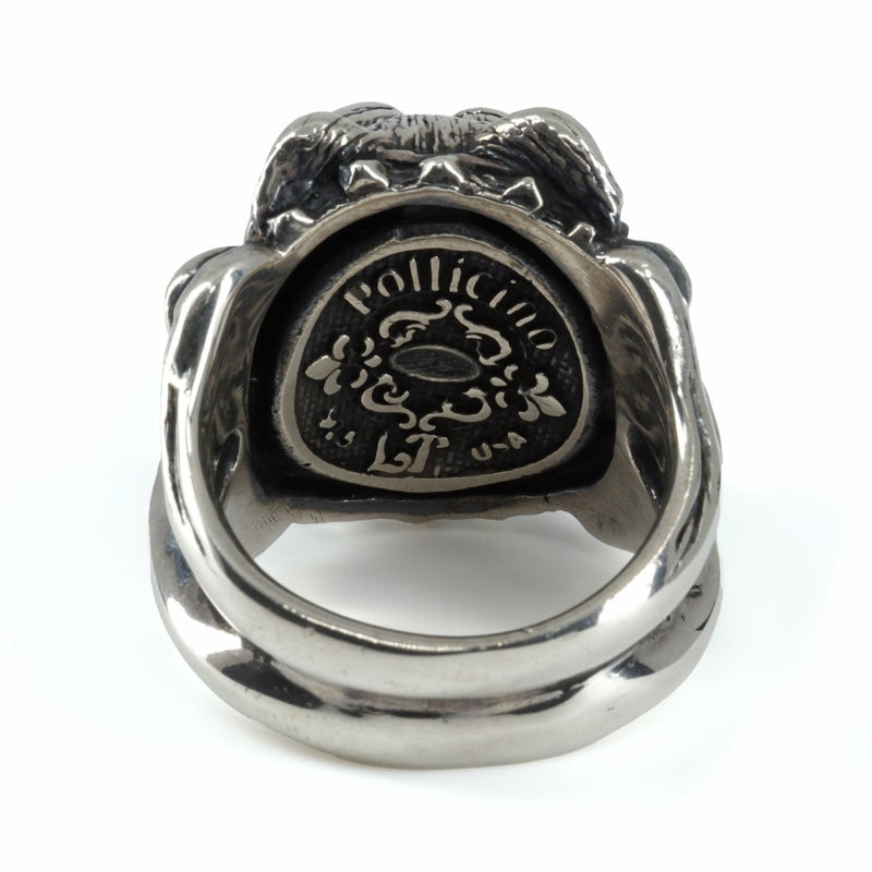 初代デザイナーの愛犬でもあった、ブルドッグの表情をコミカルに表現したリング。スタッズが施された首輪を着用しており、リングの腕部分には犬に与える骨がデザインとして取り入れられている。