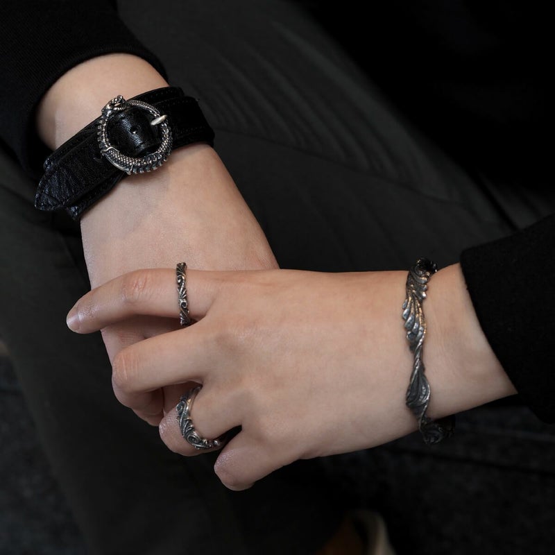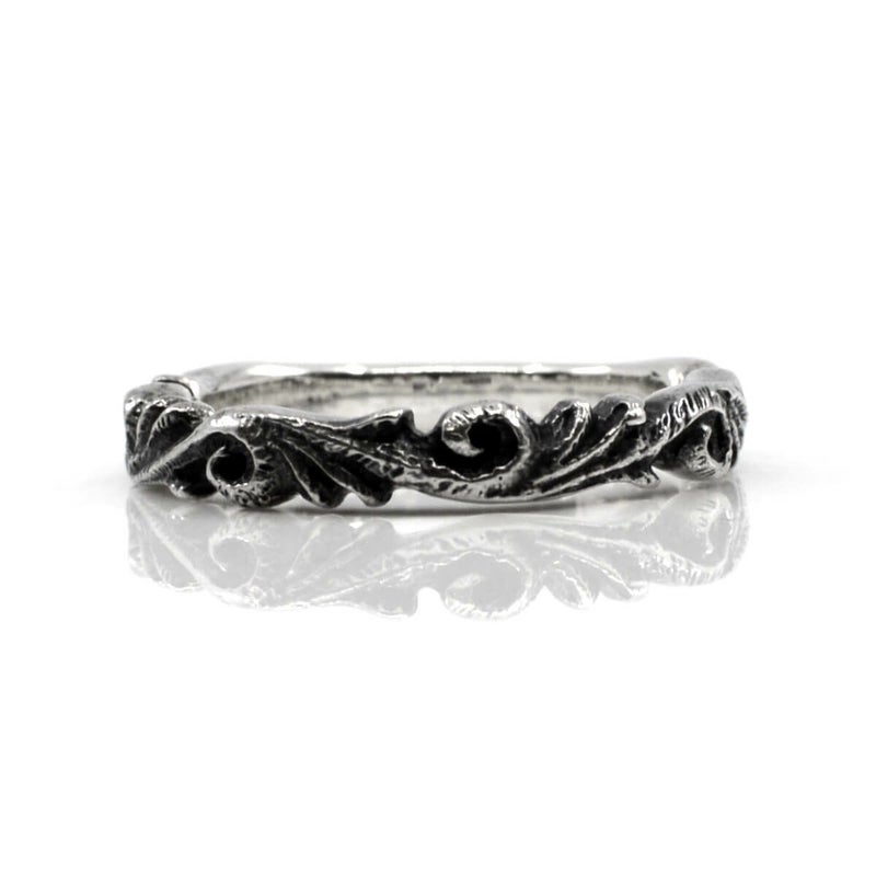 程よいボリューム感と立体的なアラベスク柄が際立つ、2つの幅でデザインされたブランド屈指の人気を誇るリング。