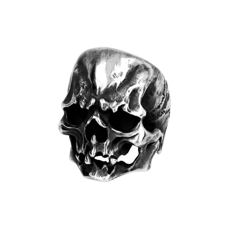 いかめしく渋い表情を携えた、程よいボリューム感で再現されたスカルの姿。よく見ると歯の抜けた口の間には、歯根の痕まで彫りこまれている。