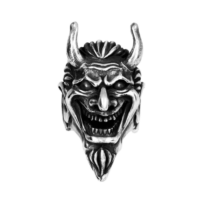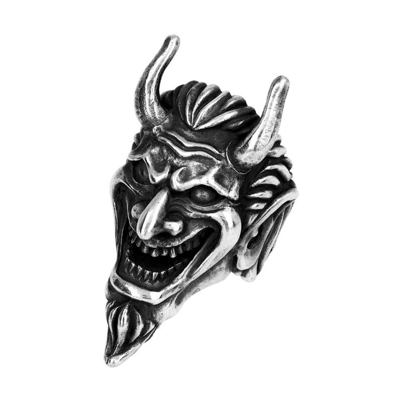 マッドカルト最大級のボリューム感を誇る、にやりと笑みを浮かべた威厳のある悪魔の姿。両サイドから後ろ側への幅を徐々に細くすることで、着用時のバランスを両立させている。
