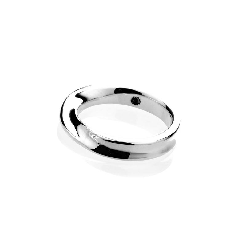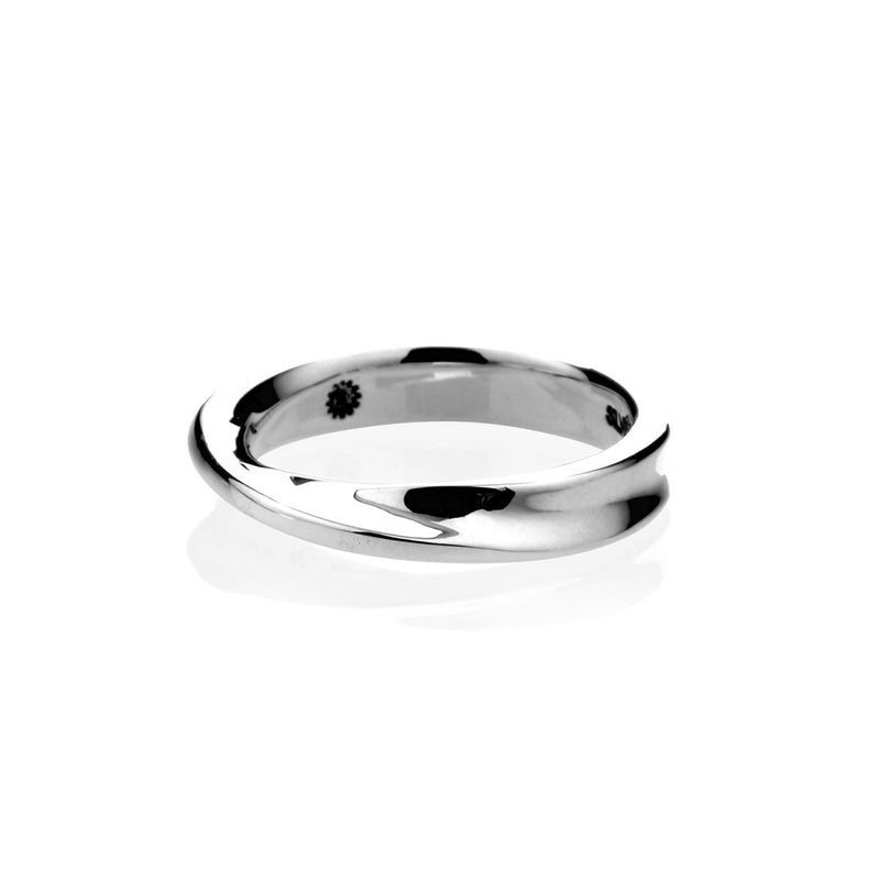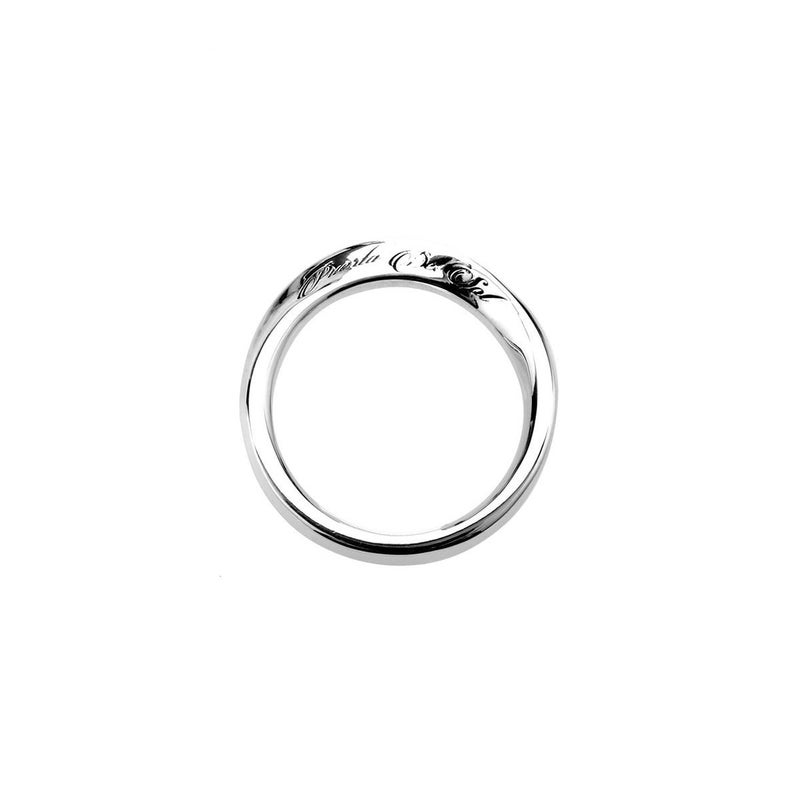 表は裏の正反対ではない=常識は常識ではない。表裏一体や固定概念からの解放を意味するメビウスの輪をモチーフにしたリング。リング中央にブランドネームが刻印されたアイテムです。