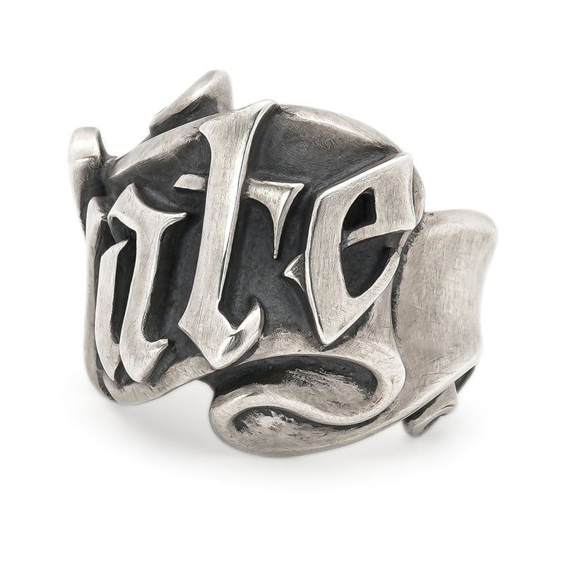 リボンリングワイドをベースに、Lower caseのh,a,t,eを並べたリング。
