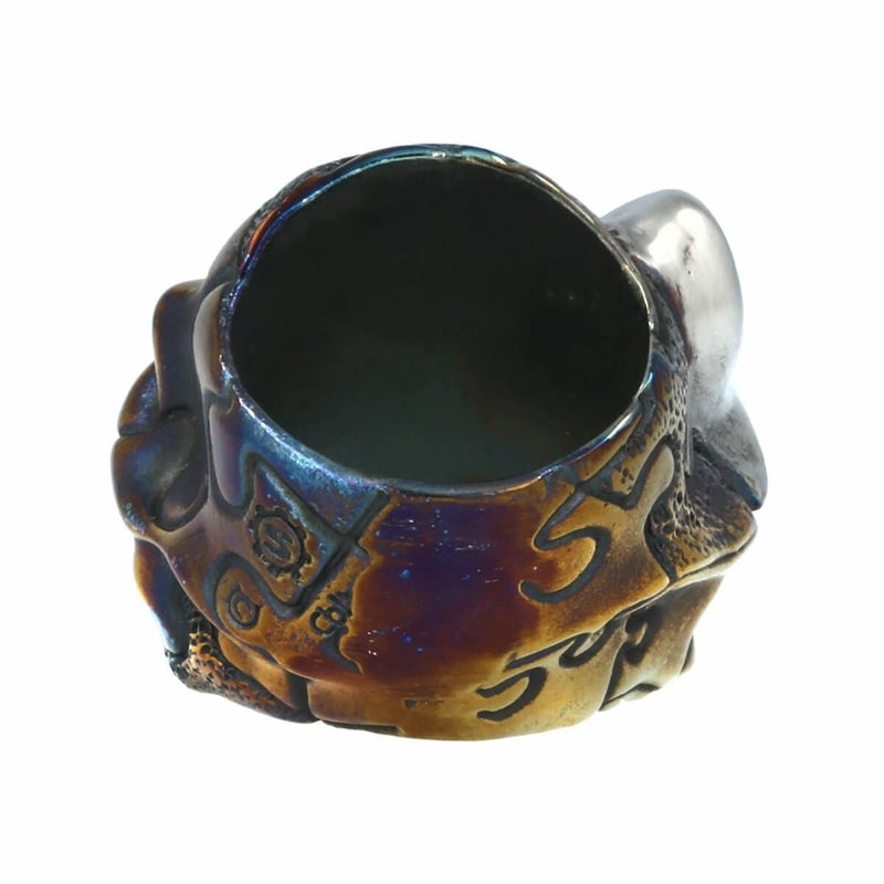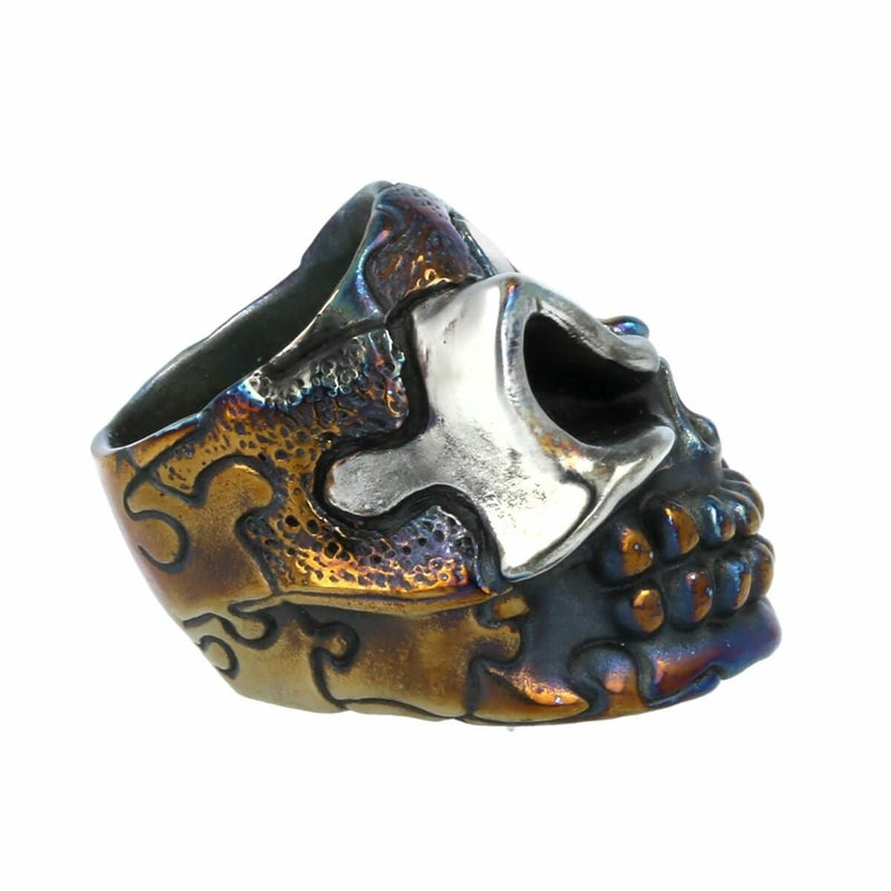ブランド設立からデザイナーの頭の中にモチーフイメージがあったパズル、20年の時を経て完成された作品です!コバルトは素材が非常に硬度なため、異素材の組み合わせや上からハンドテクスチャーは出来きません。表面をヒートする事で焼き色をつけブルーやゴールドに、研磨する事で地のシルバーカラーを出しています。ハンドテクスチャーはWAXの段階で手作業で一つ一つ施している特別な作品です。