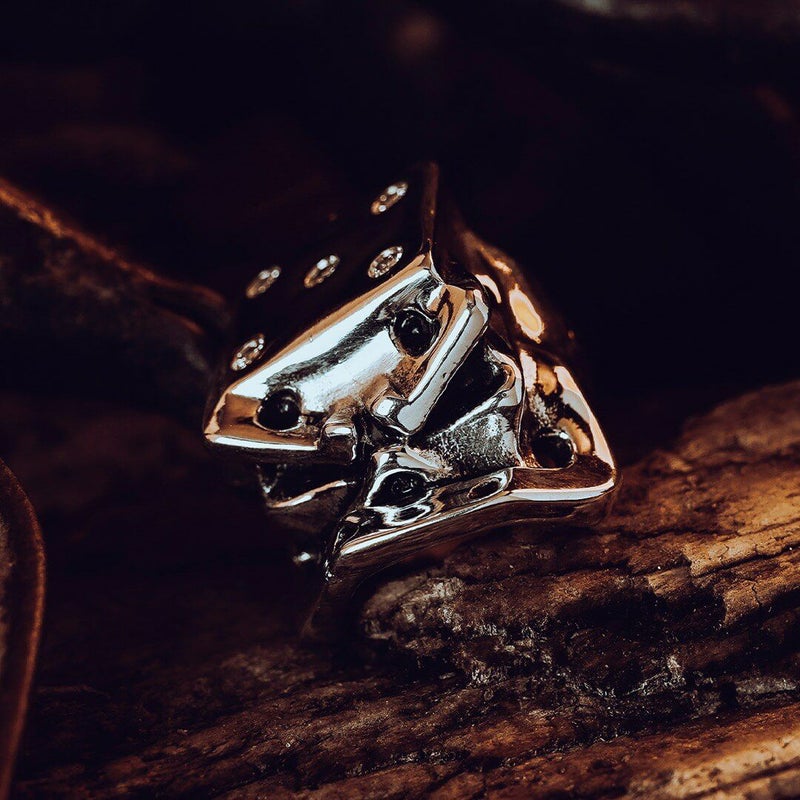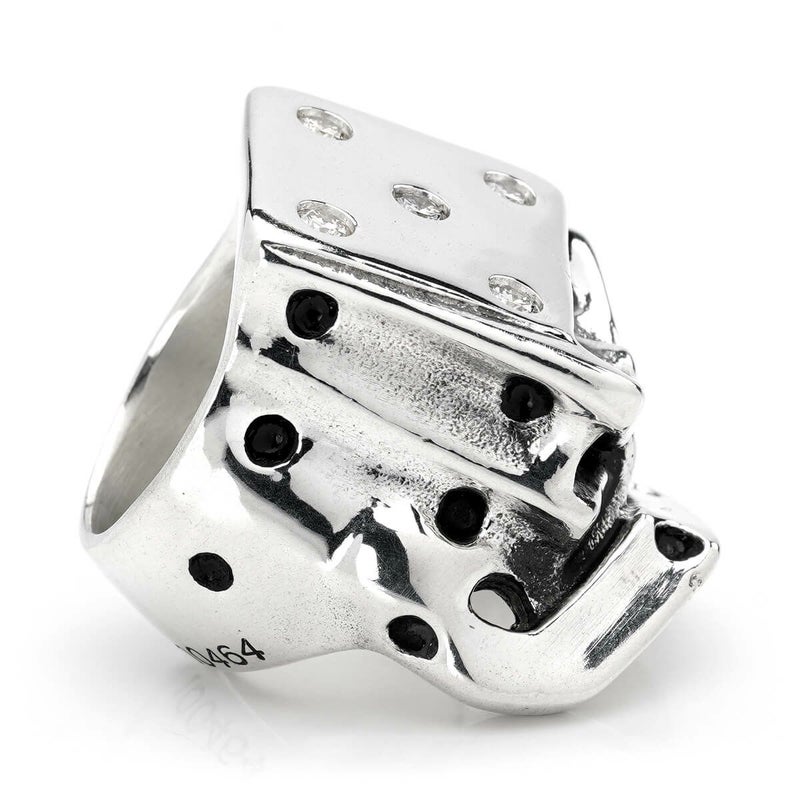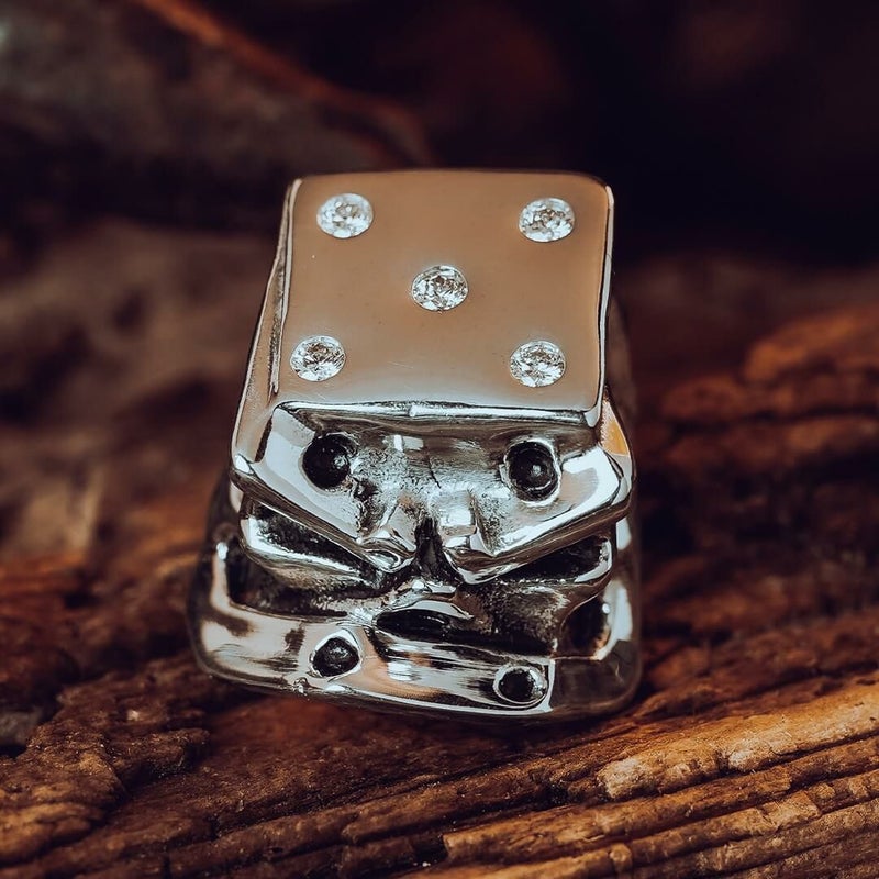 スターリンギアの中でも相当のボリュームを持つラッキーリングの5穴の面にダイヤモンドを5石セッティングしたカスタム。